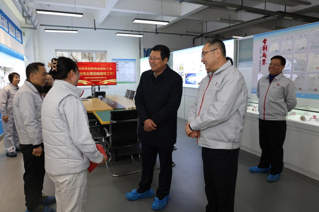 1月31日下午,陜西省國防工會主席馬宏偉、綜合部部長張鵬一行到寶光集團調(diào)研,并慰問全國勞模及困難職工。寶光集團黨委書記、董事長、總經(jīng)理謝洪濤,黨委副書記、紀委書記、工會主席姚書勤陪同調(diào)研慰問。