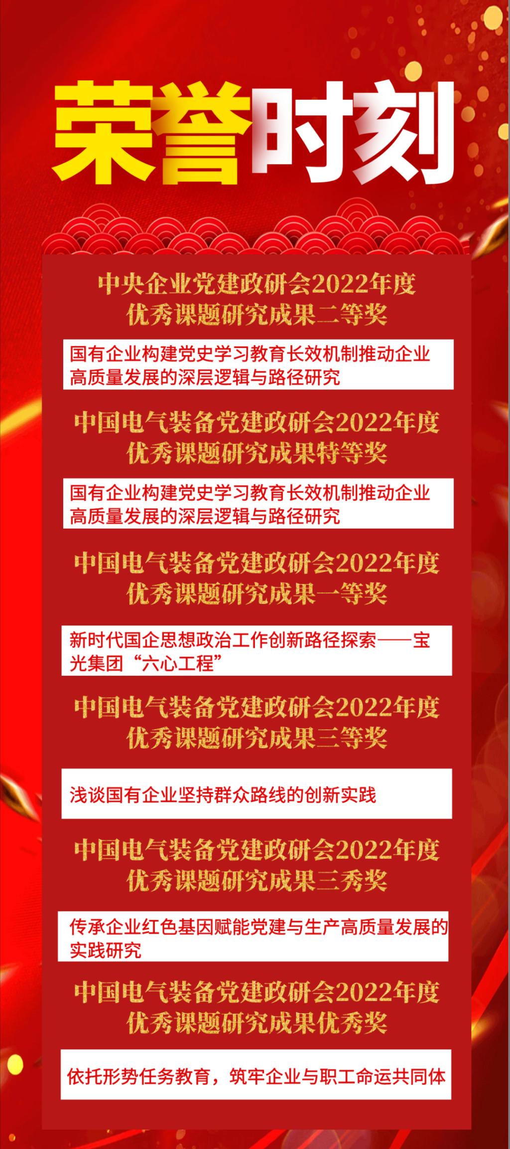 2022年,中國(guó)西電集團(tuán)堅(jiān)持以習(xí)近平新時(shí)代中國(guó)特色社會(huì)主義思想為指導(dǎo),深入學(xué)習(xí)宣傳貫徹黨的二十大精神,按照中國(guó)電氣裝備黨建政研會(huì)工作部署,立足企業(yè)實(shí)際,堅(jiān)持問(wèn)題導(dǎo)向,優(yōu)化政研選題,聚焦研究重點(diǎn),積極參加中國(guó)電氣裝備及以上政研會(huì)課題立項(xiàng),切實(shí)抓好央企黨建政研會(huì)和中國(guó)機(jī)械政研會(huì)課題研究,形成8項(xiàng)具有應(yīng)用性和指導(dǎo)性的研究成果。同時(shí),認(rèn)真落實(shí)中國(guó)電氣裝備黨建政研會(huì)工作要求,積極推進(jìn)公司2022年課題研究工作,確定3個(gè)重點(diǎn)研究方向,下發(fā)參考選題25個(gè),搭建5個(gè)課題組,審定立項(xiàng)課題89個(gè),形成A類成果26個(gè)。2022年,中國(guó)西電集團(tuán)榮獲“機(jī)械行業(yè)政治思想文化建設(shè)貢獻(xiàn)榜2021年度分榜上榜單位”與“2021年度機(jī)械行業(yè)機(jī)械紅色故事宣傳推廣貢獻(xiàn)單位”等榮譽(yù),中國(guó)西電集團(tuán)及所屬3家企業(yè)政研成果入選“2021年度機(jī)械行業(yè)政治思想文化建設(shè)特色突出案例”。