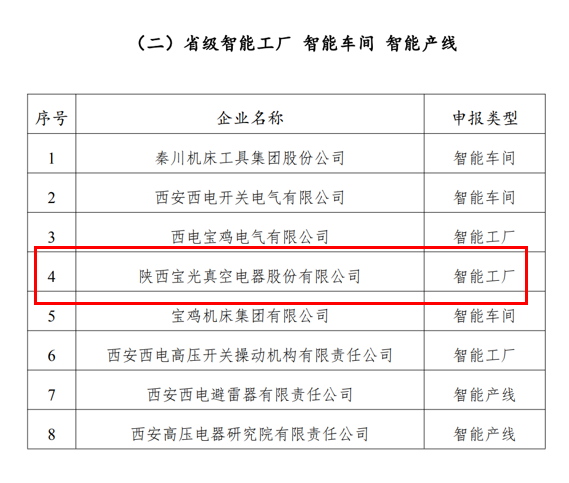 3月14日,陜西省工信廳裝備工業處發布2021年度省級智能制造試點示范企業及省級智能工廠名單,寶光股份獲評“2021年度省級智能工廠”。